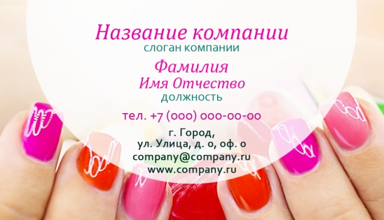 Сэкономив свое время и средства, вы сможете за сутки обеспечить своих клиентов и партнеров своими контактами за символическую сумму! Всего лишь в несколько кликов вы сможете выбрать из нашей коллекции уникальных макетов шаблон визитки для салона красоты, заполнить его необходимой контактной информацией, добавив по желанию слоган или логотип компании, и оформить заказ в режиме онлайн! Ровно через сутки ваш салон красоты будет снабжен высококачественной полиграфической продукцией. А ваши клиенты всегда будут с вами на связи!