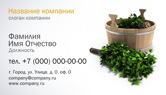 Многие выбирают баню или сауну для отдыха в конце рабочего дня, как продолжение вечеринки или другого культурно-массового мероприятия. В таких условиях человек отдыхает как физически, так и духовно, заметно поправляет свое здоровье и просто интересно проводит свободное время. Мы рекомендуем использовать визитки для бани, дабы потенциальные клиенты превращались в реальных и возвращались к вам снова и снова.