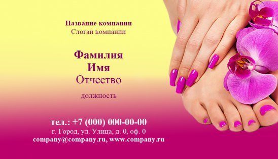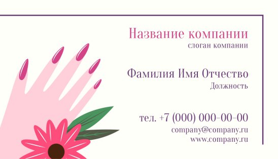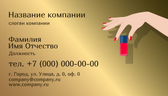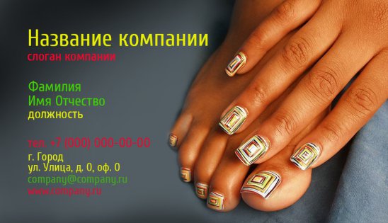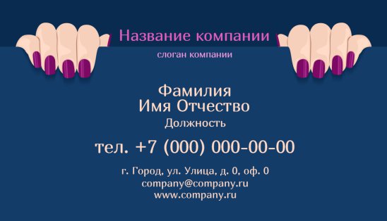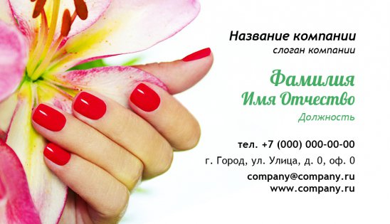 В ногтевом бизнесе очень конкурентная среда, поэтому наличие визитной карточки даст Вам преимущество перед другими, так как создаст Вам образ успешного и востребованного мастера маникюра, педикюра или специалиста по наращиванию ногтей!