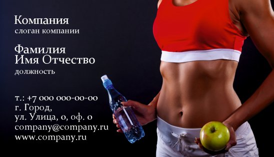 Вы также можете подкорректировать шаблон визитки для диетологов или создать свой собственный неповторимый образ, добавив слоган компании или любую другую информацию, которую считаете необходимой для клиента! С помощью самого дешевого и действенного способа – шаблона визитки для диетологов – вы сможете расширить круг своих клиентов и избавить себя от суеты!
