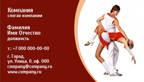 Визитные карточки нужны не только школам танца и специальным студиям, но и отдельным танцорам. Визитки для танцора – это его лицо, это уникальная возможность найти достойную работу, заручиться поддержкой коллег и партнеров.